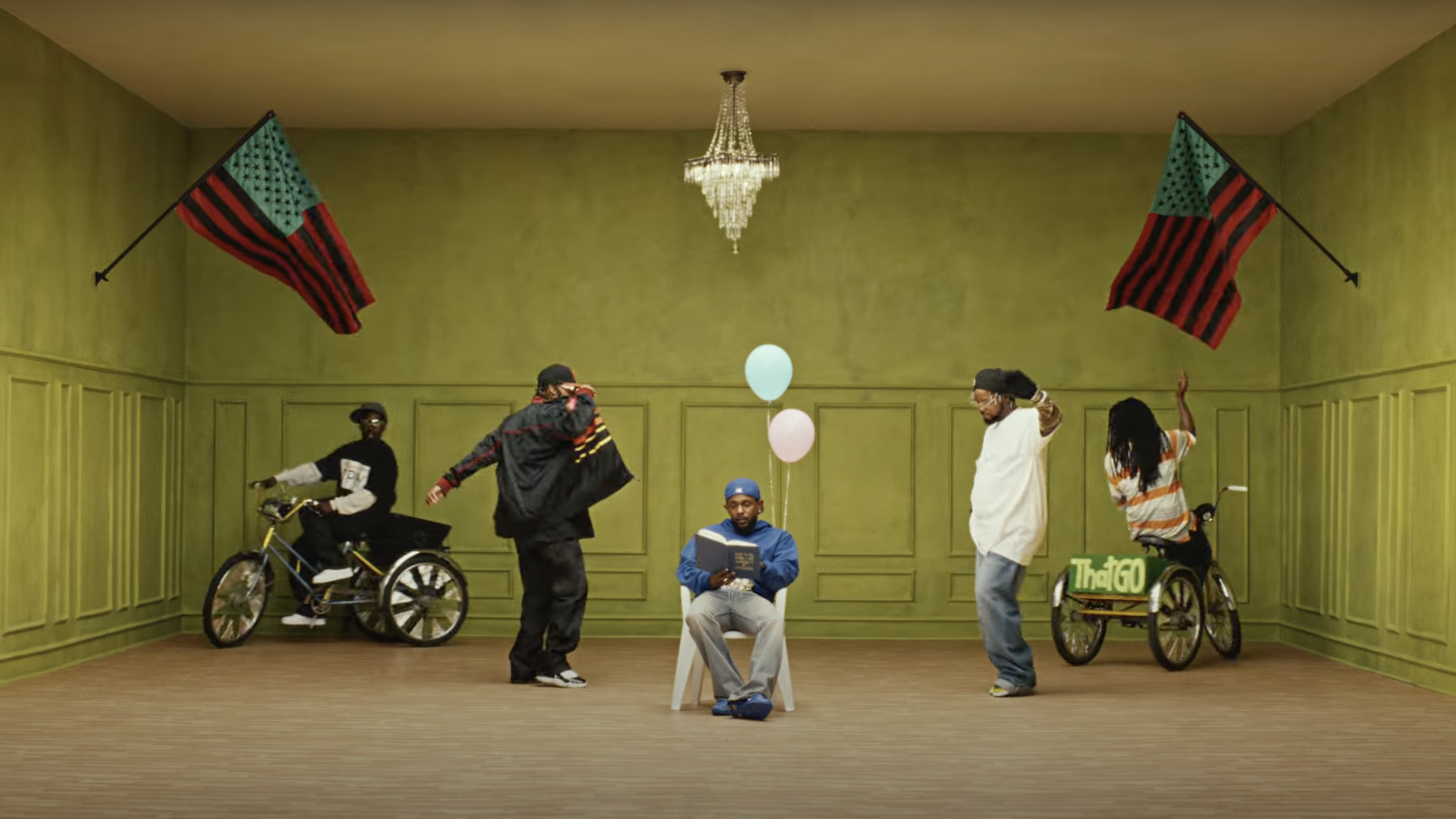 That same morning, Kendrick Lamar released the video for the song “squabble up,” the first single from his latest album. Saturated with cultural references, the video shows a Black Panther statuette and a painting of Black Jesus; a Pan-African flag, visuals inspired by Ice T’s Power album cover and a reference to a character from 1993 film Menace II Society. There’s also a scraper bike and a few turf dancers, nods to the hyphy movement, a topic I spent the bulk of last year untangling in a very personal podcast series “Hyphy Kids Got Trauma,” about my coming of age and the commodification of my culture.